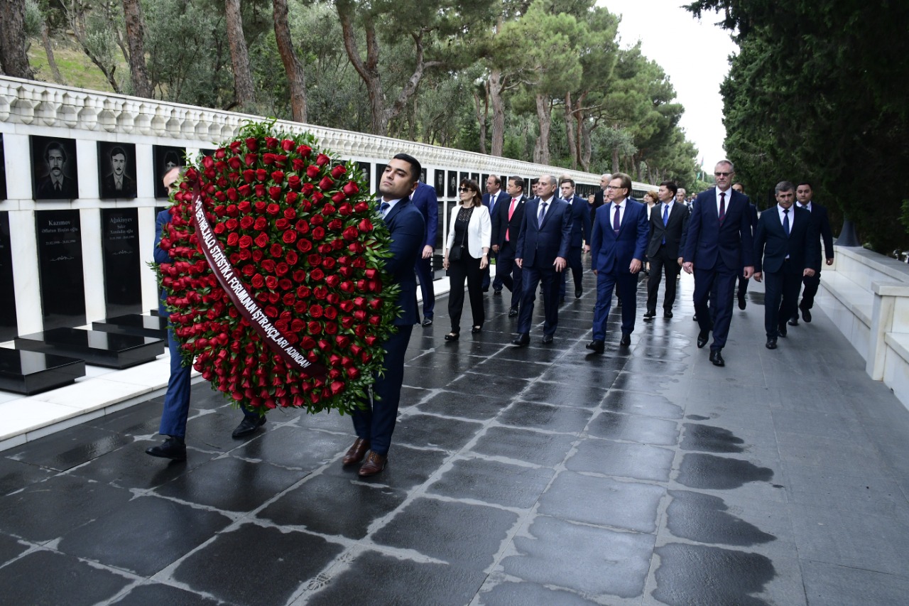 “Aktualinfo.az” yap.org.az-a istinadən xəbər verir ki, forum iştirakçıları əvvəlcə Fəxri xiyabana gələrək müasir müstəqil Azərbaycanın banisi, xalqımızın Ümummilli Lideri Heydər Əliyevin xatirəsini yad edib, məzarı önünə əklil qoyublar. Görkəmli oftalmoloq alim, akademik Zərifə xanım Əliyevanın da xatirəsi anılıb. Sonra tədbir iştirakçıları Şəhidlər xiyabanında Azərbaycanın müstəqilliyi və ərazi bütövlüyü uğrunda mübarizədə canlarından keçmiş qəhrəman Vətən övladlarının xatirəsini yad edib, “Əbədi məşəl” abidəsinin önünə əklil qoyublar.